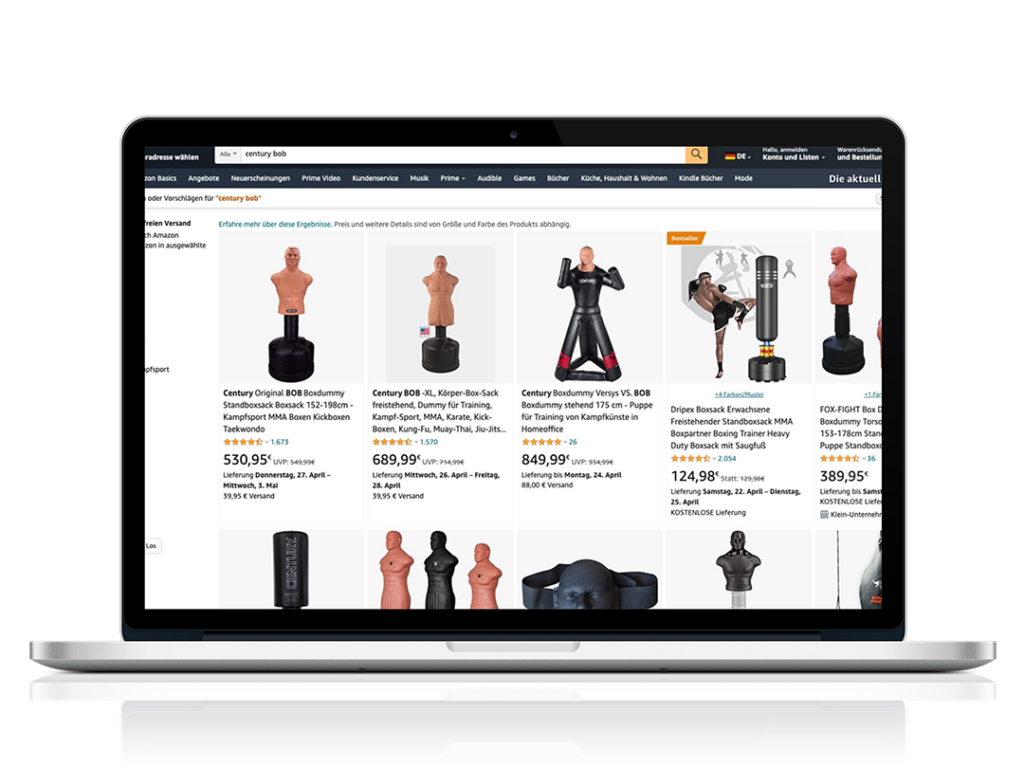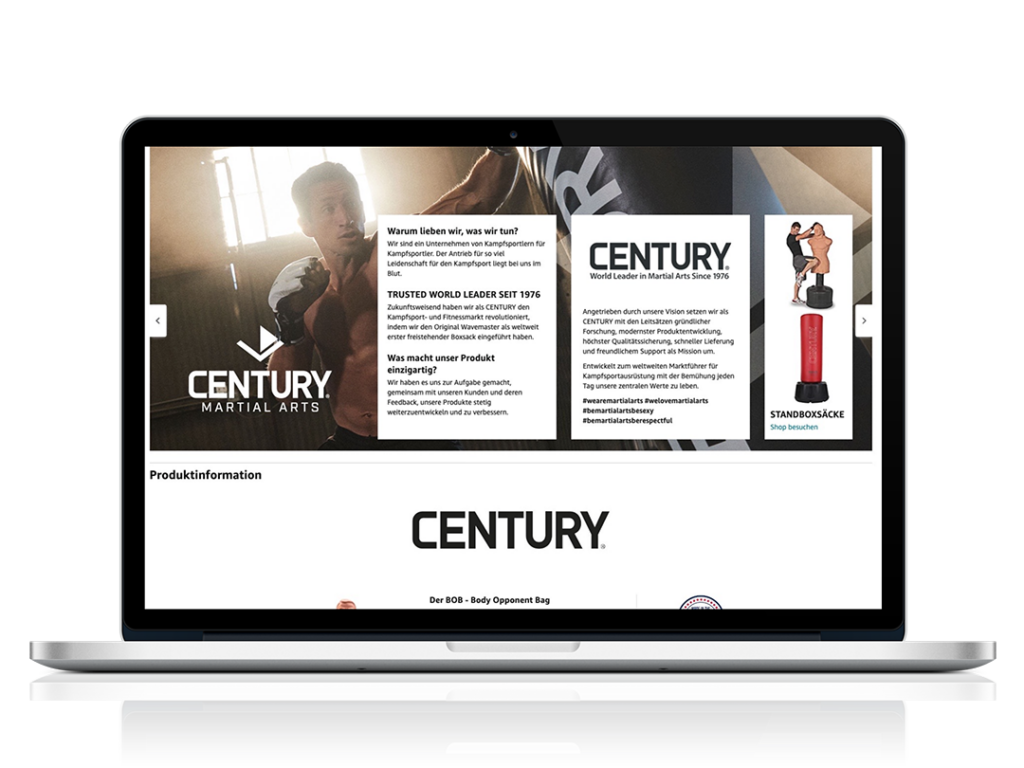 CENTURY wurde 1976 in den USA gegründet und hat sich seitdem zum weltweiten Marktführer für Kampfsportausrüstung entwickelt. Die Herausforderung auf Amazon: Die innovativen Trainingsprodukte, z. B. den Box-Dummy BOB für den Gebrauch im Home-Gym oder in Kampfsportschulen, im Vergleich zur Konkurrenz sichtbar und attraktiv zu platzieren und die Abverkaufszahlen profitabel zu erhöhen. amz.mala ermöglichte dies durch optimierten Content und einen starken Markenauftritt, der die anspruchsvolle Zielgruppe optimal bedient.